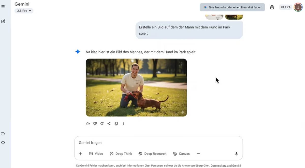 Ein weiteres herausragendes Merkmal ist die Bildfusion. Nano Banana ermöglicht es, mehrere Bilder nahtlos zu einer neuen Komposition zu verschmelzen. So können beispielsweise eine Person aus einem Foto und ein Haustier aus einem anderen in einer völlig neuen Umgebung platziert werden, wobei die KI für eine realistische Integration sorgt. Die Konsistenz von Charakteren und Details ist ein weiterer signifikanter Vorteil. Während viele KI-Bildgeneratoren bei wiederholten Generierungen Schwierigkeiten haben, das Aussehen einer Person oder eines Objekts beizubehalten, zeichnet sich Nano Banana dadurch aus, Merkmale auch bei umfangreichen Änderungen am Bild beizubehalten. Dies ist besonders für die Erstellung von Bilderserien oder für professionelle Anwendungen in Werbung und Design von großem Vorteil.